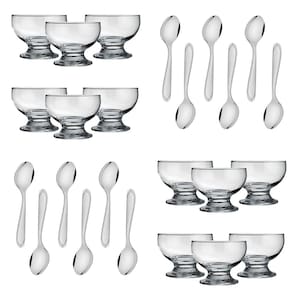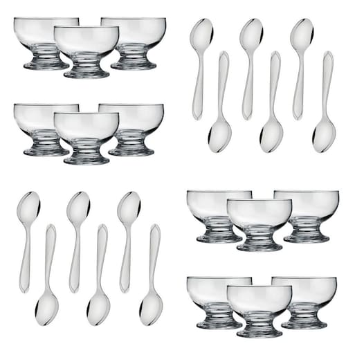 Kit Sobremesa com 12 Taças de Vidro 220ml 12 Colheres Inox