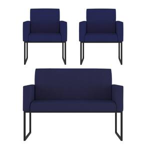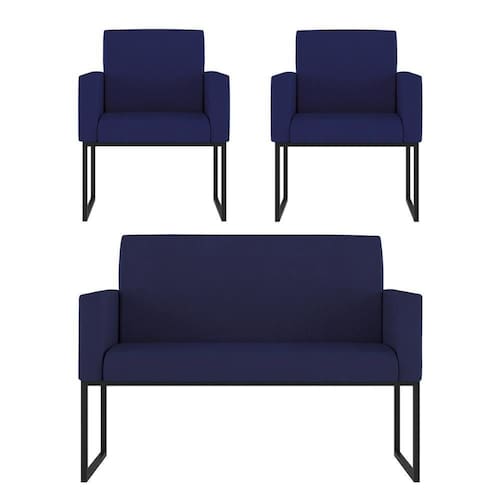 Kit Sofá 2 Lugares + 2 Poltronas Para Recepção Sala Balaqui Cor:azul Marinho Azul Marinho