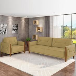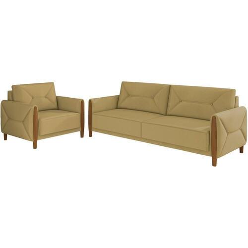 Cor: Bege | Produto: 01 Sofá e 01 Poltrona | Tipo do Sofá: Simples | Quantidade de Lugares: 3 | Tonalidade: Multicolorido Cor: TCE 1025