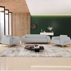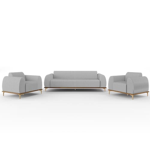 Com bastante personalidade e beleza ímpar o Kit Sofá 3 Lugares 180cm Com 2 Poltronas Molino Pés D'ouro D02 Linho Cinza D-315 - Lyam Decor vem para requintar ainda mais sua decoração. Amplamente sofisticado, é ideal se você está buscando por peças elegantes e confortáveis. Possui acabamentos impecáveis, é estruturado em madeira de eucalipto tratado, unidas com grampos galvanizados, base envernizada e pés de alumínio com metalização na cor D’Ouro que o tornam ainda mais atraente e convidativo.