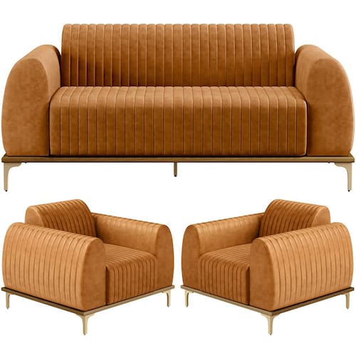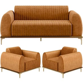 Com bastante personalidade e beleza ímpar o Kit Sofá com 02 Poltronas Molino Base Castanho Pés D'ouro D02 da Lyam Decor, vem para requintar ainda mais sua decoração. Amplamente sofisticado, é ideal se você está buscando por peças elegantes e confortáveis. Possui acabamentos impecáveis, é estruturado em madeira de eucalipto tratado, unidas com grampos galvanizados, base envernizada e pés de alumínio com metalização na cor D’Ouro que o tornam ainda mais atraente e convidativo. Deixará qualquer ambientação maravilhosa, as possibilidades são infinitas e te permitem criar arranjos incríveis, agregando muito valor ao restante da mobília. Uma aposta certeira e cheia de sucesso para você. Adquira já o seu!