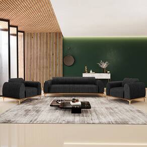 Madeira de eucalipto tratado, MDF, OSB, Linho, Espuma, AlumínioCom bastante personalidade e beleza ímpar o Kit Sofá 3 Lugares 210cm Com 2 Poltronas Molino Pés D'ouro D02 Linho Chumbo D-465 - Lyam Decor vem para requintar ainda mais sua decoração. Amplamente sofisticado, é ideal se você está buscando por peças elegantes e confortáveis. Possui acabamentos impecáveis, é estruturado em madeira de eucalipto tratado, unidas com grampos galvanizados, base envernizada e pés de alumínio com metalização na cor D’Ouro que o tornam ainda mais atraente e convidativo.