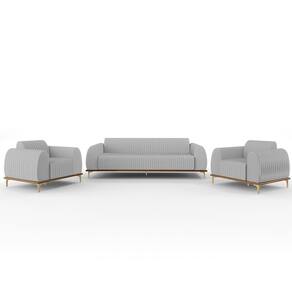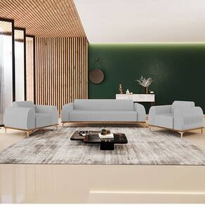 Com bastante personalidade e beleza ímpar o Kit Sofá 3 Lugares 210cm Com 2 Poltronas Molino Pés D'ouro D02 Linho Cinza D-315 - Lyam Decor vem para requintar ainda mais sua decoração. Amplamente sofisticado, é ideal se você está buscando por peças elegantes e confortáveis. Possui acabamentos impecáveis, é estruturado em madeira de eucalipto tratado, unidas com grampos galvanizados, base envernizada e pés de alumínio com metalização na cor D’Ouro que o tornam ainda mais atraente e convidativo.