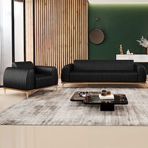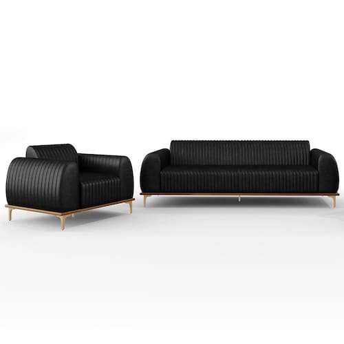 Com bastante personalidade e beleza ímpar o Kit Sofá 3 Lugares 210cm Com Poltrona Molino Pés D'ouro D02 Couríssimo Preto B-159 - Lyam Decor vem para requintar ainda mais sua decoração. Amplamente sofisticado, é ideal se você está buscando por peças elegantes e confortáveis. Possui acabamentos impecáveis, é estruturado em madeira de eucalipto tratado, unidas com grampos galvanizados, base envernizada e pés de alumínio com metalização na cor D’Ouro que o tornam ainda mais atraente e convidativo.