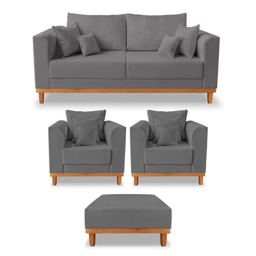 modelo de referência em elegância e . O Kit Beny +Puff Isa é um luxo e vai tornar o seu ambiente ainda mais lindo e aconchegante. Conta com almofada no encosto para trazer maior conforto e também acompanha almofadas de decoração para dar aquele toque final de bom gosto e sofisticação. O seu design é incrível para todos os ambientes, sua base e pés de madeira trazem a sustentação necessária e o tecido de alta qualidade fazem dele a combinação ideal para o seu ambiente!