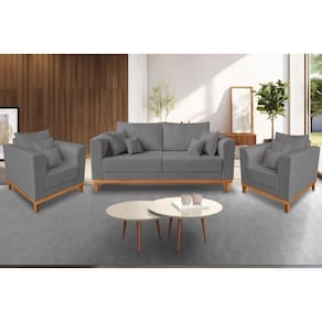 Kit Sofá 03 Lugares + 02 Poltronas Beny Viena Linho - Madeira Prima Deccor