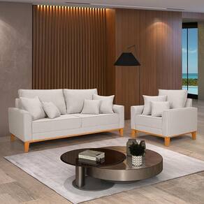 Conjunto Sofá Beny 1,80. O modelo Beny um sofá fixo do estilo living, ele exibe extrema elegância e sofisticação. Um verdadeiro sonho de consumo que encanta os olhares e ganha o coração de muita gente. O assento é na espuma D26 soft com molas, encosto na espuma D23, para se tornar ainda mais elegante e confortável possui almofadas que são e pés em madeira maciça .