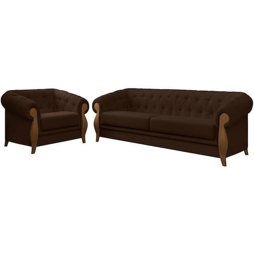 Kit Sofa e Poltrona Decorativa Murano Veludo, com estilo único e a qualidade que você busca, seu desenho clean dispõe de harmonia para qualquer ocasião. Estrutura em madeira de reflorestamento (pinus, eucaliptos e placas de OSB) e cintas elásticas de alta resistência. Compostos por madeira imunizada contra mofo, cupim e microrganismos, revestimento em tecido veludo, encosto fixo em espuma D-26 com manta acrílica, assento em espuma D-26 com manta acrílica, braça em espuma D-26 com manta acrílica, adornos em espuma D-16, acabamento inferior em tela de ráfia e pés em madeira tingidos. Suportando até 120 kg cada. Possui design requintado, que oferece sofisticação, charme e elegância ao seu ambiente. Estes móveis chegarão na sua casa separado em 02 volumes.