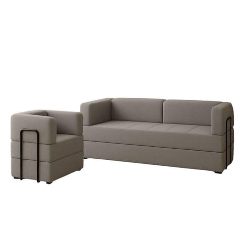 Kit Sofá E Poltrona Na Caixa Modular Soft Para A Sala Cinza