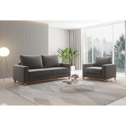Kit Sofá Living 2 Lugares 181,5cm e Poltrona Alpino Grafite - Cinza