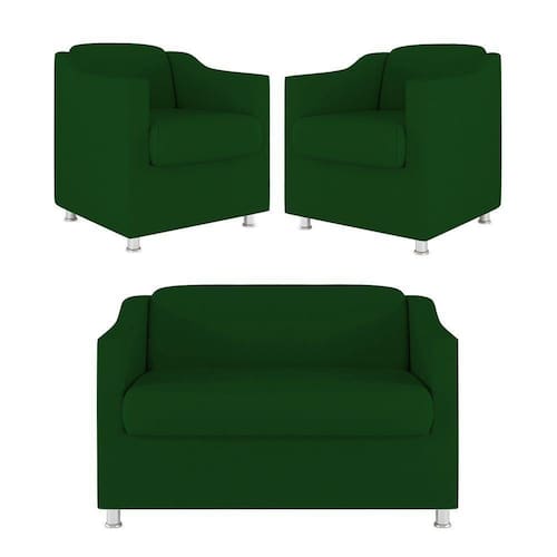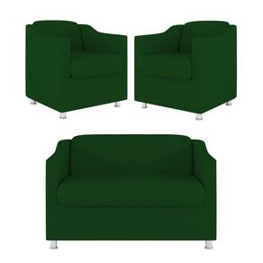 Kit Sofá Namoradeira + 02 Poltrona Tilla Recepção Sala Suede Cor:verde