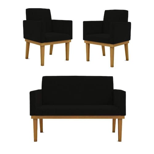 Kit Sofá Namoradeira + Poltrona Reforçada Sala De Estar Cor:preto