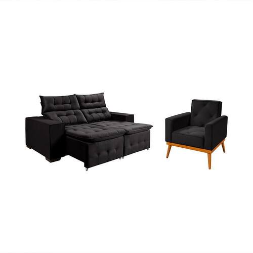 AS IMAGENS SÃO MERAMENTE ILUSTRATIVAS E PODEM SOFRER VARIAÇÕES DE COR E PEQUENOS DETALHES DE ACORDO COM O SEU MONITOR, ILUMINAÇÃO DO AMBIENTE E ATÉ MESMO A SUA PERCEPÇÃO VISUAL.Kit Sofà Retratil ReclinÃvel Bari 1,90 Pillow Mais Poltrona FlorenÃa em Veludo Preto