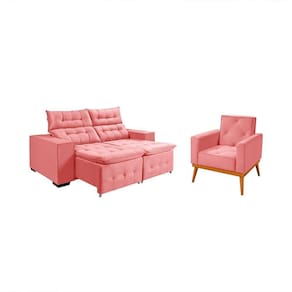 AS IMAGENS SÃO MERAMENTE ILUSTRATIVAS E PODEM SOFRER VARIAÇÕES DE COR E PEQUENOS DETALHES DE ACORDO COM O SEU MONITOR, ILUMINAÇÃO DO AMBIENTE E ATÉ MESMO A SUA PERCEPÇÃO VISUAL.Kit Sofà Retratil ReclinÃvel Bari 1,90 Pillow Mais Poltrona FlorenÃa em Veludo RosÃ