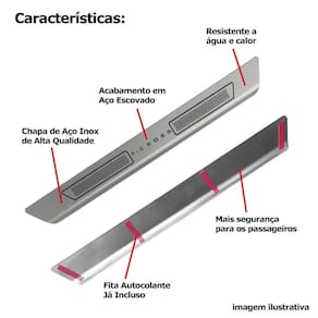 soleira de porta em aço inox com acabamento em aço escovado. Proporciona uma área extra de preservação para a pintura de seu carro. Aumentando o cuidado contra riscos e arranhões, e ainda dando um estilo esportivo ao seu veículo. Kit de 4 soleiras para o volkswagen t-cross 4 portas todos os anos. Características: