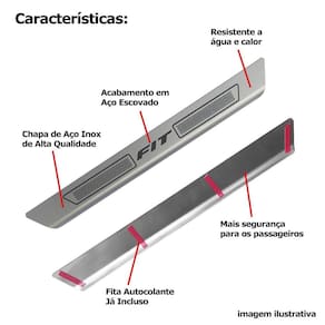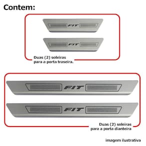 Kit soleira porta aço escovado honda fit Soleira de porta em aço inox com acabamento em aço escovado. Proporciona uma área extra de preservação para a pintura de seu carro. Aumentando o cuidado contra riscos e arranhões, e ainda dando um estilo esportivo ao seu veículo. Kit de 4 soleiras para o honda new fit 2004 a 2009 e 2015 a 2021. Características: - feito em aço inox - modelo específico para o veículo - cor: prata e cinza - referência: sl076 - aplicação: autocolante fita inclusa Itens inclusos: - duas 2 soleiras grandes para a porta dianteira. - duas 2 soleiras pequenas para a porta traseira. Dimensões - comprimento: 45 cm maior / 20 cm menor - largura: 4,5 cm todos - espessura: 1 cm todos de 30 dias para defeitos de fabricação. Marca: Não Informado