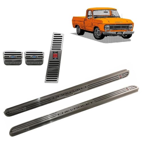 Compatível com todos os anos e modelos do carro; Fabricado em inox; Gravação em baixo relevo em CNC com logo C10 ou Gravata; Acompanha fita dupla face de colagem; Par de Soleiras de fabricação em Inox; Gravação em baixo relevo em CNC com acabamento escovado de alto padrão; Compatível com todos os anos e modelos da Chevrolet C10 sem adaptação ou seja, plug and play Alto padrão de acabamento. Ean: 7899603061449 Marca: Não Informado