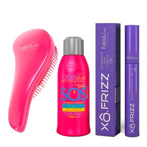 Kit SOS 300ml e Modelador Xo Frizz 10g e Escova Forever Liss O Reconstrutor SOS Antiemborrachamento é um produto de ação rápida que em apenas 5 minutos transforma os fios emborrachados em cabelos mais saudáveis. Isso só é possível devido a tecnologia exclusiva desenvolvida pela Forever Liss que conta com um complexo de aminoácidos (Colágeno, Ômegas 3 e 6) que recupera a estrutura interna da fibra (massa cortical) deixando os fios mais resistentes, macios, com brilho e saudáveis.