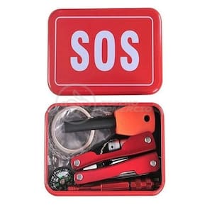 Chegou o kit de sobrevivência SOS! Por ser um modelo compacto você poderá transporta-lo facilmente para qualquer lugar! Tenha uma exploração muito mais imersiva em atividades de camping, trilha ou qualquer outra atividade ao ar livre, perfeito para te auxiliar em qualquer imprevisto. Características:- Material: Metal Tamanho e Peso (aproximadamente): -Tamanho da embalagem: 9,5 x 6,5 x 3,2 cm;- Peso total da unidade: 208 g;Itens Inclusos:- 1x Alicate Multifuncionalidades (Chave Fenda, Chave Philips, Serra e Lanterna Led); - 1x Serra de dedo (Cortar Madeira, Plástico e Etc.); - 1x Apito de Emergência; - 1x Bússola com adaptador para relógios e pulseiras de sobrevivência;- 1x Pederneira e raspador; - 1x Cartão multifuncional funções (abridor de latas, Faca lateral, chave de fenda reta, Régua, abridor de garrafas, Chave sextavada exterior, chave borboleta) - 1x Lata portátil- 1x Manual de instruçõesATENÇÃO:- Produto contém lâminas e partes pequenas, NÃO é recomendado para crianças; OBS:-Este item está isento de exigência de certificação compulsória pelo INMETRO e regulamento técnico Mercosul anexo à portaria INMETRO. Marca: Tauê