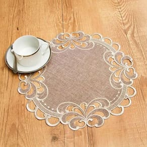 Produzido sobre uma estrutura 100% poliéster. O modelo é inspirado no bordado francês rechilie e chama atenção pela simplicidade e elegância. Bordado e organza em total harmonia. Devido à sua característica lisa é ideal para combinar com diversos tons de cores da cozinha e realça a decoração de mesa! Qualidade, praticidade e beleza para o seu dia-a-dia ser sempre um dia especial. Perfeito para encantar e acolher seus convidados e familiares em uma mesa sofisticada e elegante. Foto meramente ilustrativa.