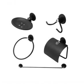 Kit Acessorios Para Banheiro 05 Pecas Preto Fosco