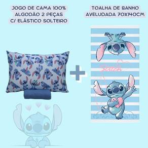 Kit Stitch Xepa Jogo Cama 100% Algodão + Toalha Banho Grande - Única