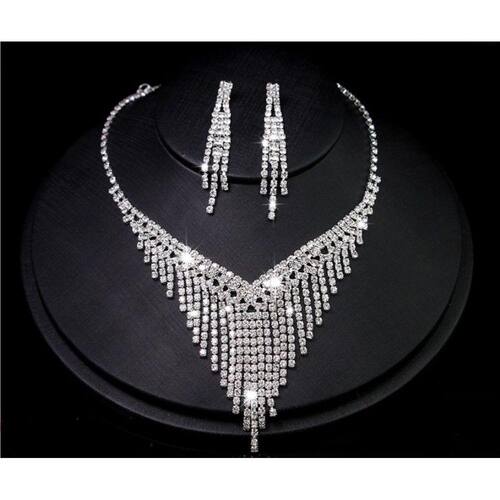 Material: Strass de alta qualidade Medidas do Colar: Circunferência de 40 cm, Cascata com 6,5 cm Medidas do Brinco: 5,5 cm Incluso: Colar + Par de Brincos Ocasiões Recomendadas: