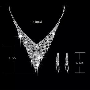 Este deslumbrante conjunto de colar e brinco foi cuidadosamente projetado para adicionar um toque de sofisticação e glamour aos momentos especiais da vida, como casamentos, eventos formais e festas de debutantes. Com sua cascata de strass reluzentes, este conjunto é a escolha perfeita para quem busca um visual marcante e encantador.