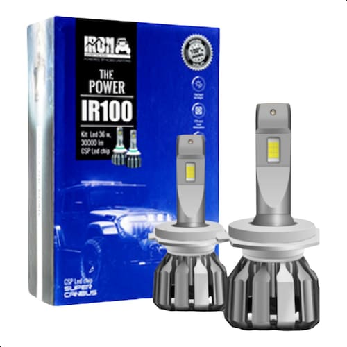 O KIT DE LAMPADA LED IRON IR100 conta com CHIP CSP de alta tecnologia (Tecnologia Japonesa), 6500K-lampadas Super Brancas, 36W de potencia, ótimo sistema de resfriamento com COOLER, e ainda, Super CANBUS, que inibe acusação de erro no painel do seu veiculo, além disso dura até 5 vezes mais que as outras lâmpadas