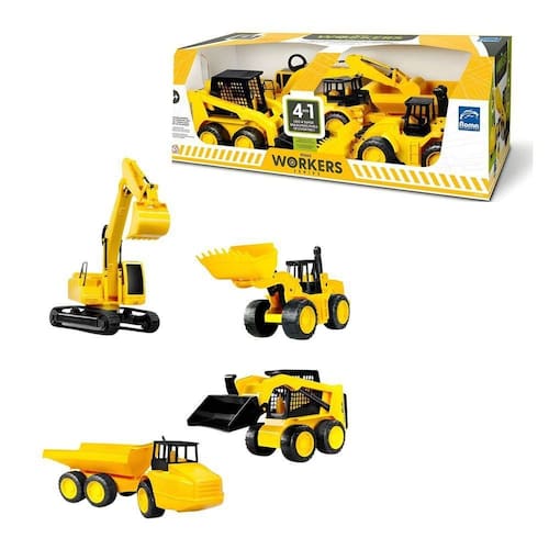 Conteúdo da Embalagem: 01 Carregadeira; 01 Escavadeira; 01 Fora da Estrada; 01 Bob Workers