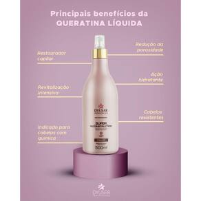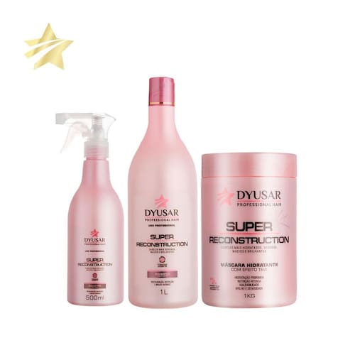 O kit contém: 01 shampoo hidratante dyusar super reconstruction 1 litro 01 máscara hidratante dyusar super reconstruction 1kg 01 queratina cistina líquida dyusar super reconstruction 500ml Shampoo hidratante super reconstruction. o shampoo hidratante limpa os fios, revitalizando e fortificando os cabelos. Modo de usar: aplique sobre os cabelos molhados, massageando bem até formar espuma. Enxágue e se necessário, repita a aplicação. Produto originalanvisa: 25351.274855/2018-53 Mascara super reconstruction dyusar professional hair. efeito teia. a mascara hidratante é uma máscara capilar que tem efeito teia, promove hidratação profunda, nutrição intensa, maleabilidade, brilho e sedosidade. Modo de usar: apos lavar os cabelos, aplique o produto sobre toda a extensão dos fios. Massageie e deixe agir por aproximadamente 7 minutos. enxágue bem.274955/2018-80 Queratina cistina em spray. A queratina cistina é um restaurador capilar que confere uma revitalização intensiva da fibra capilar, reduzindo a porosidade hidratando e deixando os cabelos mais resistentes e saudáveis, indicada para cabelos frágeis, desvitalizados ou sensibilizados por processos químicos. Modo de usar: agite antes de usar. Após lavar os cabelos, retire o excesso umidade com a toalha e aplique o produto por toda extensão dos fios. Enluvar e deixar agir por aproximadamente por 10 minutos. Enxaguar. Pode ser como pre escova.274904/2018-58 Marca: Não Informado Ean: 7792559093819