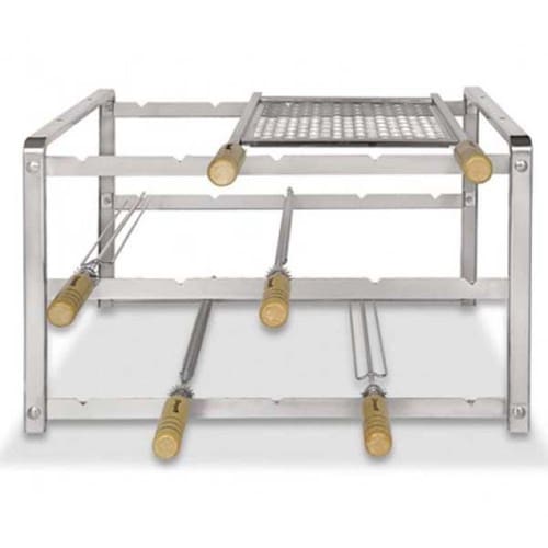 Kit Suporte 1005 Inox Giragrill - 110 Descrição Do Produto - Todos Os Espetos Que Acompanham O Produto Possuem Engrenagens Para Que Possam Ser Colocados Nos Apoios Em Até 17 Posições - Espetos E Grelha Com Cabos Em Madeira Marfim - Armação Do Kit Em Formato Pórtico Para Evitar Sua Exposição Direta Sobre O Calor Da Brasa Modelos Sem Este Recurso Têm Vida Útil Mais Curta - Possui 3 Níveis De Altura: Todos Com Apoio Multiponto - Possui Sistema Multiponto, Que Possibilita O Apoio Do Espeto Em 17 Posições Diferentes - Possui Trava Para Fixar O Kit À Base De Alvenaria - Acompanha Manual De Montagem E Uso Do Produto Características Do Produto - Medidas Do Braseiro Sugestão : L 58,5 X P 39,0 X A 22,0 Cm - Medidas Do Produto Sem Espetos : L 62,5 X P 49,0 X A 37,0 Cm - Medidas Da Embalagem: C 100,0 X L 63,6 X A 39,6 Cm codigo de barras: 7896569202145 codigo: 8638644 Ean: 7896569202145