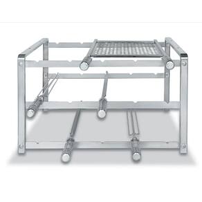 São suportes em AÇO INOXIDÁVEL para churrasqueiras de alvenaria, com 3 níveis de altura, para girar e fixar Espetos e Grelhas GIRAGRILL. Algumas características exclusivas ajudam a melhorar tecnicamente o churrasco: