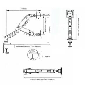 Kit suporte articulado de mesa ajuste de altura e pistão a gás nb-f80 + bandeja apoio notebook nbh-1 Este kit é formado pelos produtos: suporte pistão a gás nb-f80 e a bandeja para notebook nbh-1.Toda a versatilidade do suporte f80 da marca nb ajustada para uso com notebook. Com este kit você usa seu notebook de até 17 polegadas fixo na bandeja acoplada ao suporte. Nesta junção você ganha a movimentação do seu notebook com a firmeza e qualidade do suporte de pistão a gás nb-f80. O braço é construído em material de liga de alumínio com capas de acabamentos em material polímero plástico injetado de alta resistência . Um organizador de cabos na parte interna deixa o visual ainda mais limpo e organizado. A fixação na mesa pode ser feita de duas formas diferentes: morsa ou parafuso. Essas duas opções para fixar o suporte nb-f80 estão inclusas no kit de acessórios que acompanham o produto. Ao receber escolha a melhor opção e comece a usar seu suporte. 1 - fixação por morsa já vem com o produto A fixação por morsa consiste em apertar o suporte na lateral da mesa, sem a necessidade de furar ou cortar nada. É um sistema parecido com o das redes de ping-pong. Abertura máxima da morsa: 10cm espessura máxima que a mesa pode ter para que você consiga usar este sistema em seu suporte de monitor . 2 - fixação por parafuso já vem com o produto Este método consiste em usar um parafuso que transpassa a mesa para apertar o suporte para monitor. Neste sistema é necessário furar o tampo em alguns casos é possível aproveitar o mesmo buraco do passa cabos já existente . O parafuso é m10 10mm de diâmetro e tem comprimento útil de 10cm espessura máxima que a mesa pode ter . Esta opção de parafusar o suporte para monitor f80 nb é ideal para quem não possui a borda da mesa livre. B- especificações do suporte f80 nb - total flexibilidade para movimentos, sem esforço e sem a utilização de ferramentas; - pistão a gás e juntas desenvolvidos para fornecer movimentos suaves precisos e estáveis; - construído em liga de alumínio fundido e super-resistente; - organizador de cabos; - design compacto e retrátil que aumenta sua área de trabalho. Características - atura máxima: 41cm medido da mesa ao centro da fixação vesa atrás do monitor ; - atura mínima: 15cm medido da mesa ao centro da fixação vesa atrás do monitor ; - ajuste de altura de até 26cm; - carga mínima de 2kg; - carga máxima de 7,5kg; - design retrátil; - sistema de movimentação com pistão a gás; - giro de tela 360 paisagem/retrato ; - rotação do suporte de 180; - ajuste de inclinação da tela de -30 a +85. Dados técnicos - material: alumínio / nylon reforçado com fibra / abs injetado; - dimensões embalagem: 40x30x10cm; - peso: 2,9kg. C- especificações bandeja de apoio para notebook acoplável a suporte de pistão nbh-1 - bandeja de apoio que se acopla a suporte articulado de monitor; - acompanha parafusos para fixar a bandeja ao suporte vesa 75x75mm; - acompanha fixa de fita rip para fixação do notebook. Importante Esta bandeja só pode ser Utilizado em suportes indicados por nós e instalada conforme nossa orientação para sua segurança. Características Dimensões: largura x profundidade : 30cm x 26cm Material: aço carbono Tamanho mínimo do notebook: 12 doze polegadas Tamanho máximo do notebook: 17 dezessete polegadas Recomendações importantes para instalar e usar Travar a inclinação vertical do suporte e usar o conjunto sempre com a fita rip fornecida. Características gerais do produto: Padrão vesa mm : 75x75; 100x100 Com pistão a gás: sim Tamanho da tela: de 7.9 a 10.5 Modo de fixação: morsa / parafuso Peso suportado: de 2,5 à 5kg Local de instalação: mesa Cor do suporte: preto Acompanha o produto: 1 suporte braço duplo f80 nb 1 bandeja de apoio nbh-1 Parafusos para fixação do monitor / suporte Parafusos para fixar a bandeja ao suporte vesa 75x75mm Manual de instruções Marca: Não Informado