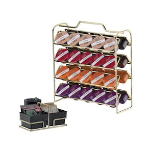 Material (Aramado): Aço CarbonoMaterial (Potes): PlásticoCor/Acabamento (Aramado): Dourado BrilhosoCor/Acabamento (Potes): Preto FoscoCapacidade (Porta cápsulas): 40 cápsulas Três CoraçõesMedidas e Peso: