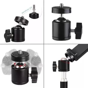 Ball Head Cabeça de tripé A cabeça de tripé Ball Head pode mover-se suavemente, com possibilidade de travamento em diversos ângulos. Com ela é possível utilizar suporte de celular e de tablet e mantê-lo tanto na vertical, como na horizontal. Além de ser compatível e recomendada também para uso com câmeras como: Action câmeras, Go Pro, Camcorders, iluminadores como Ring light, braço de led, entre outros...