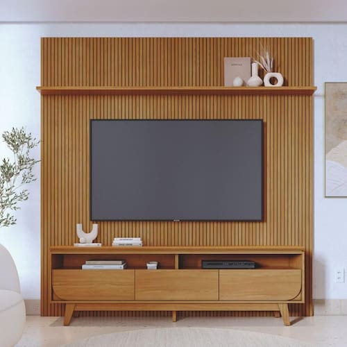 O painel é um produto perfeito, para o seu ambiente ter mais modernidade e praticidade, possui um design elegante com os seus detalhes ripados em alto relevo, testado para suportar TVs de até 75 polegadas.