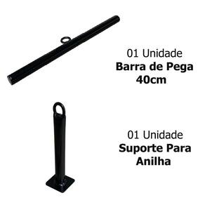 01 suporte para anilha 01 barra de pega 40cm 01 mosquetão 8cm - suporta 230kg