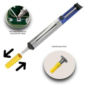 - Sugador de Solda: 18,5cm de comprimento X 2cm de largura X 2cm de altura;