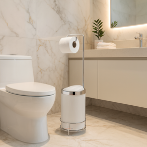 KIT SUPORTE PORTA PAPEL HIGIÊNICO + LIXEIRA 8 LITROS BASCULANTE