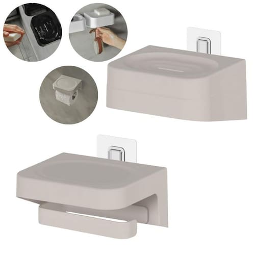 Conjunto para Banheiro - Saboneteira Prática com Gancho Auxiliar + Porta Papel Higiênico com Estante de Apoio Instalação Sem Furo - Linha OU Praticidade, organização e um toque moderno no seu banheiro. Este conjunto foi desenvolvido para oferecer funcionalidade no dia a dia com uma instalação simples, limpa e sem necessidade de furar a parede. Ideal para uso em box, próximo à pia ou ao vaso sanitário. Itens Inclusos no Conjunto: Saboneteira de Parede com Gancho Auxiliar Design inteligente com base vazada que evita acúmulo de água. Acompanha gancho inferior para pendurar esponjas, buchas ou toalhas pequenas, otimizando o uso do espaço. Porta Papel Higiênico com Estante de Apoio Suporte resistente para papel higiênico com prateleira superior ideal para apoiar itens como celular, aromatizador, cremes ou objetos de uso diário. Benefícios do Produto: Instalação sem furos: Sistema adesivo de alta fixação, ideal para quem não quer danificar azulejos ou paredes. Organização prática: Mantém os itens do banheiro acessíveis e protegidos de umidade. Design moderno e compacto: Combina com diversos estilos de decoração. Resistente à umidade: Fabricado em plástico ABS durável, fácil de limpar e próprio para ambientes úmidos. Fácil de instalar e remover: Solução perfeita para ambientes alugados ou para quem busca praticidade. Modo de Instalação: Limpe a superfície seca, lisa e livre de sujeira ou gordura . Retire a película protetora do adesivo. Posicione o produto na parede e pressione firmemente por alguns segundos. Aguarde 24 horas antes do uso para garantir uma fixação segura. Superfícies recomendadas: Azulejo, vidro, porcelanato, mármore ou qualquer superfície lisa e não porosa. Evite instalar em: Paredes com textura, tinta, cimento cru ou madeira rústica.