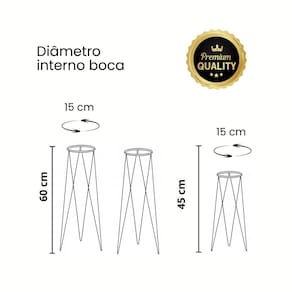 Fabricados em aço carbono de alta resistência, os suportes oferecem excelente estabilidade, mesmo para vasos mais robustos, mantendo leveza e fácil movimentação. O design tripé proporciona firmeza no apoio e um visual clean, ideal para ambientes internos e externos como salas, varandas, escritórios, áreas gourmet, jardins e sacadas.