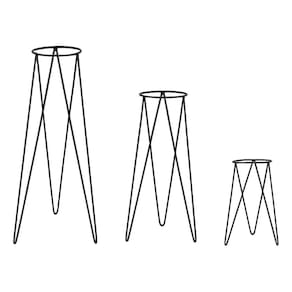 O kit de suportes tripé para vasos foi desenvolvido para quem busca valorizar plantas e flores com um visual moderno, funcional e bem distribuído no ambiente. Composto por dois suportes grandes de 60cm e um suporte médio de 45cm, permite criar composições em diferentes alturas, trazendo profundidade, harmonia e destaque para a decoração.