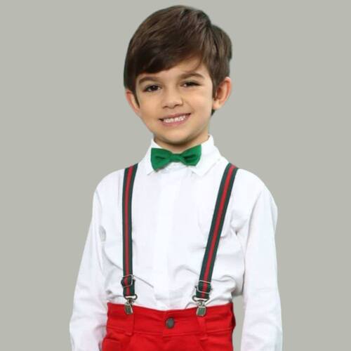 Kit Suspensório Infantil e Gravata Borboleta Diferentes Cores KIT ACOMPANHA 1 SUSPENSÓRIO E 1 GRAVATA BORBOLETA PARA CRIANÇAS DE 0 A 8 ANOS DE IDADE. FEITO COM MATERIAL DE POLIÉSTER, FÁCIL DE VESTIR E AJUSTAR. TABELA DE MEDIDA REGULAGEM MÁXIMA SE ESTICAR O ELÁSTICO - 54CM REGULAGEM MÍNIMA - 23CM LARGURA SUSPENSÓRIO - 2,5CM LARGURA GRAVATA - 8,5CM GRAVATA POSSUI AJUSTE EM CETIM.