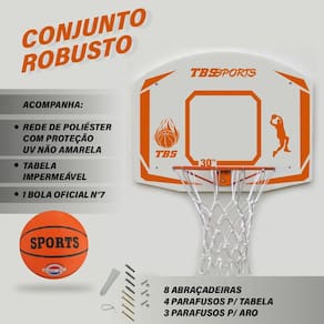 - REDE Confeccionada em nylon seda 8 mm, c/ 11 alças, c/ proteção contra raios UV Fixada no aro através de abraçadeiras de nylon - BOLA O tamanho n°7 e peso 500g da bola são iguais das bolas usadas nos jogos oficiais A Bola é texturizada proporcionando maior aderência para as mãos em todas as jogadas A bola é de borracha reforçada, podendo ser usada em qualquer tipo de quadra e ambiente Medidas e peso aproximados:Circunferência - 72cm;Diâmetro - 23cm;Peso - 500g. - ACESSÓRIOS