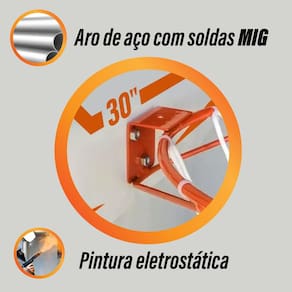 - ARO - 41 cm diâmetro Muito Robusto, em aço trefilado 1/2" ( 12,7 mm ) c/ reforço estrutural Medida - diâmetro 41 cm Pintura eletrostática à pó cor laranja Fixado na tabela através de 3 parafusos/porcas