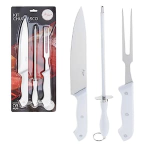 Kit Pro de Churrasco e Tábua de Bambu Descubra o conjunto perfeito para suas aventuras culinárias, ideal tanto para a cozinha quanto para o churrasco. Este kit é composto por faca forjada em uma peça única, garantindo resistência e precisão nos cortes. As lâminas em aço inoxidável 420 de altíssima qualidade oferecem um fio preciso e durável. Os cabos em plástico ultra resistente têm um acabamento ergonômico, proporcionando conforto no manuseio. A tábua de bambu é projetada para prolongar a vida útil do fio de corte das suas facas, permitindo cortes em diversas peças de carne. O bambu é naturalmente antibacteriano e, após uma simples lavagem com água e sabão neutro, retorna ao seu estado natural. Com excelente qualidade e um design neutro, a tábua possui uma pequena alça para pendurá-la, mantendo sua cozinha sempre limpa e organizada. Kit Composto Por: 1 Chaira 29 cm 1 Faca 32 cm 1 Garfo 28 cm 1 Tábua de Corte 40,5x28cm Composição Tábua de Corte : Bambu Composição Utensílios Churrasco : Aço Inox e Plástico Prepare-se para uma experiência culinária excepcional