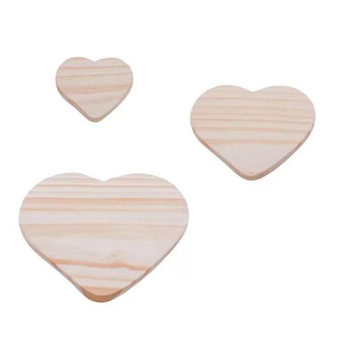 Itens: 03 tábuas em formato de coração Medidas tamanho P:(LxAxE): 14,5 X 13 x 2 cm Medidas tamanho M:(LxAxE): 22 X 20 x 2 cm Medidas tamanho G:(LxAxE): 28,5 X 25,5 x 2 cm Material: Madeira Pinus Peso aprox. Produto: 955g
