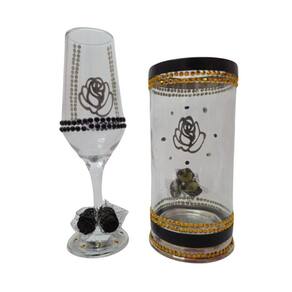 Kit Taça e Porta Vela Dama da Noite Rosa Vidro Kit Taça e Porta Vela Dama da Noite Rosa Vidro