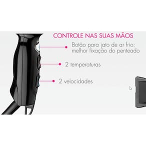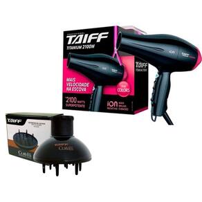 SECADOR DE CABELO PROFISSIONAL TAIFF TITANIUM COLORS ION PINK 2100W - 127V O Secador de Cabelo Taiff Titanuim Série Color é mais potente e modern. Design diferenciado, silencioso e com maior durabilidade, possui 2100W de potência, 2 velocidades, 5 temperaturas, botão jato de ar frio e fio de 3 metros.Para deixar seus cabelos mais brilhantes e macios, ele promove a emissão de 67 milhões de íons negativos por cm3. Os íons neutralizam a eletricidade estática e selam as cutículas dos fios. Os íons negativos também reduzem o tempo de secagem, pois diminuem de 4 a 6 vezes uma gota de água, facilitando sua penetração nos fios e deixando os cabelos hidratados e sedosos. CaracterísticasNanotecnologia titânio Silencioso Longa durabilidade Redução no tempo de secagem Cabelos hidratados e sedosos Com bico de ar em PPS que supera altas temperaturas, direciona o fluxo de ar e facilita a modelagem. Jato de ar frio simDifusor nãoDobrável nãoNº de velocidades 2Temperaturas 5Portátil nãoTecnologia ÍonsEspecificações TécnicasPotência (W) 2100Comprimento do fio 3 metrosMotor AC - sim DimensõesAltura 22cm Largura 21,5cm Profundidade 10cm Peso 788 Gramas Garantia 6 meses1 Manual e certificado de garantiaDIFUSOR DE AR TAIFF CURVESImagens meramente ilustrativas.Todas as informações divulgadas são de responsabilidade do Fabricante/Fornecedor.